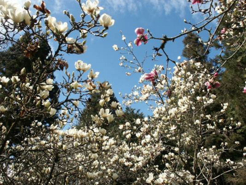 Mognolia belongs to the family of Magnoliaceae, deciduous tree. It is one of the existing and more primitive families in the plant evolution. It has large flower. When the flowers bloom in spring, the whole tree can hardly see the leaves. One characteristic of the magnolia is its joyful scent. There are white and purple species mixed in this area.